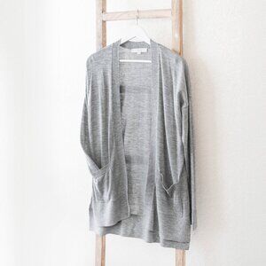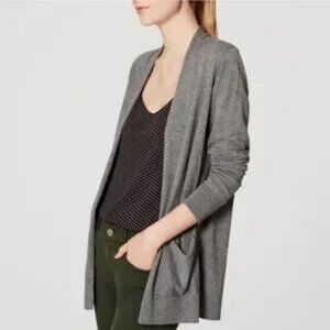 Ann Taylor Loft Cardigan Sz M Gray Wool Blend Pockets Lightweight