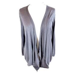 Ann Taylor Loft Cardigan Women's Size L Open Front Waterfall Soft Mushroom NWOT