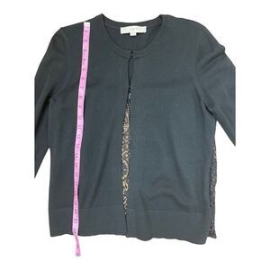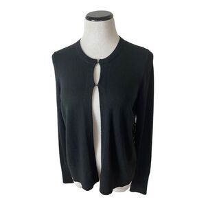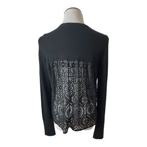 Ann Taylor Loft Classic Black Knit Cardigan Sweater Lace Back Long Sleeve Size S