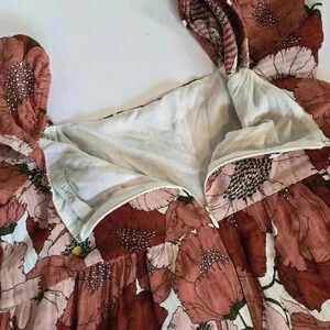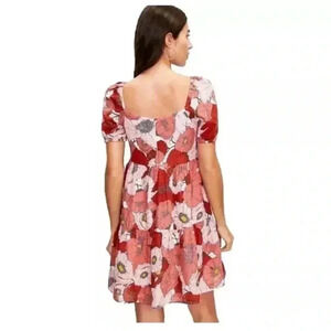 Ann Taylor Loft Coral Large Floral Poppy Square Neck Puff Sleeve Dress 4