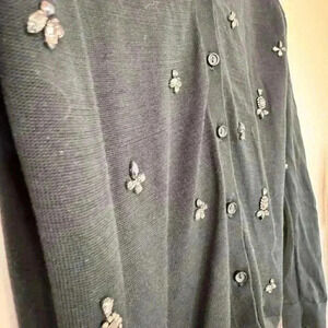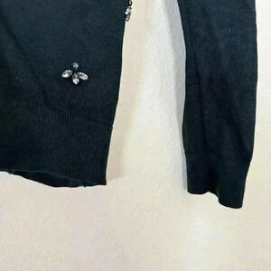 Ann Taylor Loft Cotton Cardigan Sweater Black with Gemstone Accents Medium