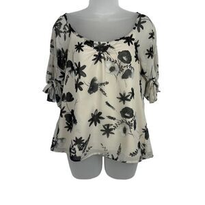 Ann Taylor Loft Cream & Flower Patterned Blouse Sz S