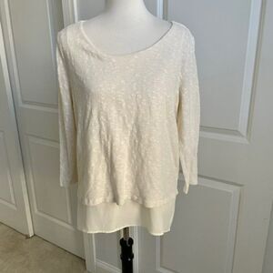 Ann Taylor Loft Cream Layered 3/4 Sleeve Sweater Top Size Large