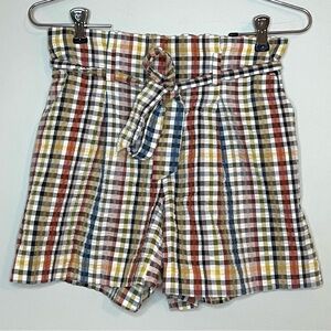 Ann Taylor Loft Crinkle Plaid Paperbag Tie Waist High Rise Shorts Sz XS