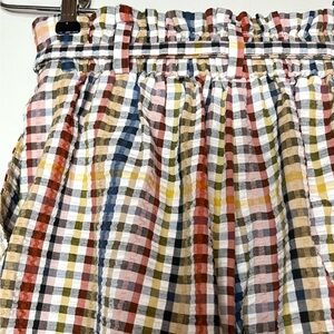 Ann Taylor Loft Crinkle Plaid Paperbag Tie Waist High Rise Shorts