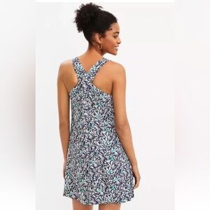 Ann Taylor Loft Criss Cross Back Swing Dress Tropical Print Womens Medium (1036)