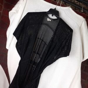 The Ann Taylor Loft Crochet Swimsuit Cover-up Kimono Open Cardigan is a stylish and versatile piece perfect for beach outings or poolside relaxation. Made from lightweight polyester material with a crochet design, this black cardigan features a solid pattern and sleeveless design. It is designed for a regular size L and is easy to care for with hand wash only instructions. The adjustable fit and breathable fabric make it a comfortable and practical choice for sunny days by the water. Perfect for adding a touch of chic to your swimwear ensemble. I do consider reasonable offers!! All items are shipped the same or the next business day!! Bundle two or more items and receive an automatic 15% discount and combined shipping!! Please see pictures for measurements and details.