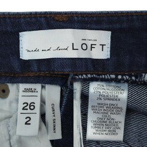 Ann Taylor Loft Curvy Skinny Denim Jeans Size 26 / 2 Low Rise Dark Wash