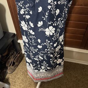 Ann Taylor Loft Dress Navy Blue Floral summer sheath knee length sz 6