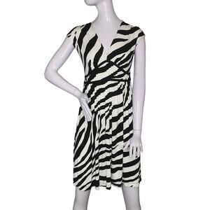 Ann Taylor Loft Dress Size 00 Zebra Print Slit Sleeves Fit and Flare