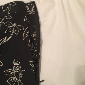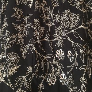 Knee length or slightly below skirt, with flower designs including some silver sequins, clear beads, and white floral patterns. In great condition.