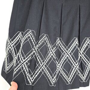 Ann Taylor Loft Embroidered Argyle Circle Box Pleat Skirt in Black White Whimsigoth Punk Street Emo Preppy