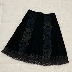 Details: Adorable feminine a line skirt by Loft. Floral embroidery reminiscent of cross stitch. Lace trim. Gray, black and pretty teal. This skirt is beautiful.