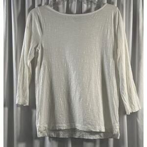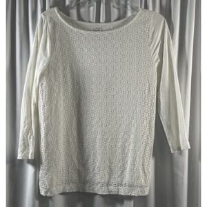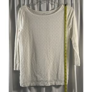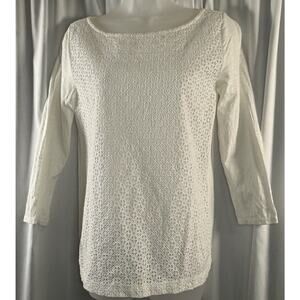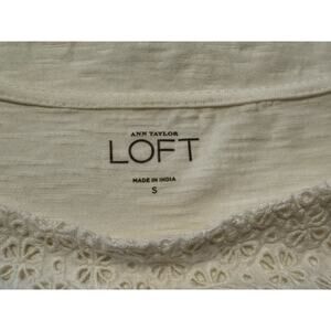 Ann Taylor Loft Eyelet Front T-Shirt White S Coastal Chic 79-14-01