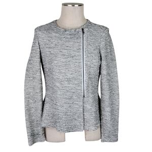 Ann Taylor Loft Factory Moto Tweed Cardigan Size S Asymmetrical Zipper Peplum