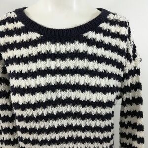 Ann Taylor Loft Factory Striped Sweater Size M Open Knit Nautical Pullover Blue