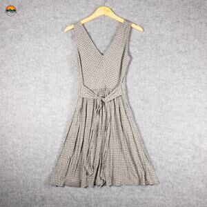 Ann Taylor Loft Fit & Flare Dress Gray Sleeveless V-Neck Belted Women's Size XS