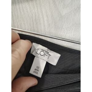 These Ann Taylor Loft flared wide-leg dress pants in size 10 are a versatile addition to any wardrobe. The pants feature a striped pattern in black, a pleated front, and a comfortable fit for everyday wear or special occasions like weddings or office settings. With a mix of Rayon, Polyester, and Spandex material, these machine washable pants offer both style and convenience. Perfect for those looking for a retro-inspired, office-appropriate look with added comfort and functional pockets.