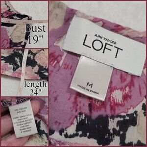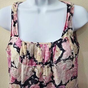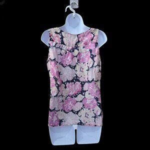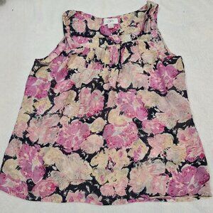 Ann Taylor Loft Floral Silk Tank M – Pink Black Sleeveless Blouse EUC Soft Chic