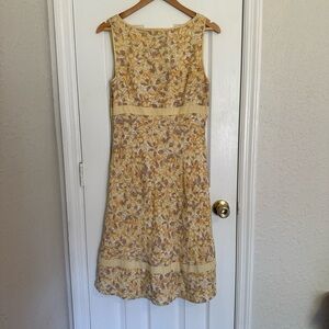 Ann Taylor Loft Floral Yellow Sleeveless Dress Linen Summer coquette