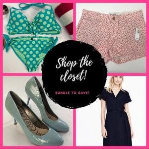 Check out my closet to bundle and save! I have Banana Republic, Ann Taylor, Free People, Kate Spade, J Crew, Prada, Betsy Johnson, Boden, Anthropology, Coach, Cole Hahn, White House Black Market, and Much More!!!