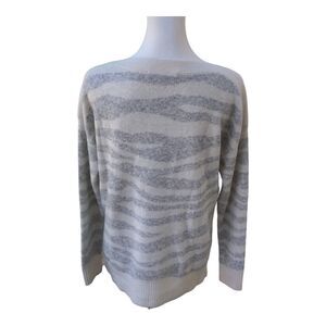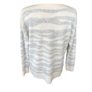 Ann Taylor Loft Gray White Wool Blend Zebra Striped Cozy Soft Tunic Sweater XS