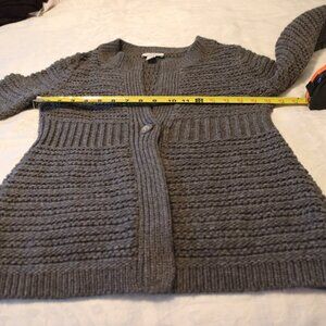 Ann Taylor Loft Grey Open Knit Single Button Cardigan Sweater Size Medium