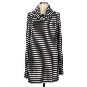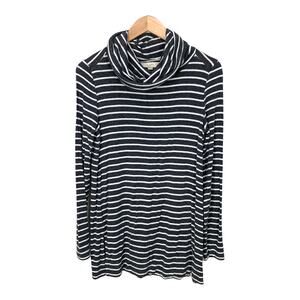 Ann Taylor Loft Grey White Stripe Knit Turtleneck Cowl Tunic Top S Small