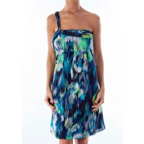 💙 Ann Taylor Loft Ikat Print Silk One-Shoulder Dress |
