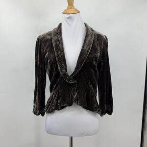 Ann Taylor Loft Jacket Womens 6 Chocolate Crushed Velvet Shawl Peplum Cropped