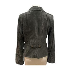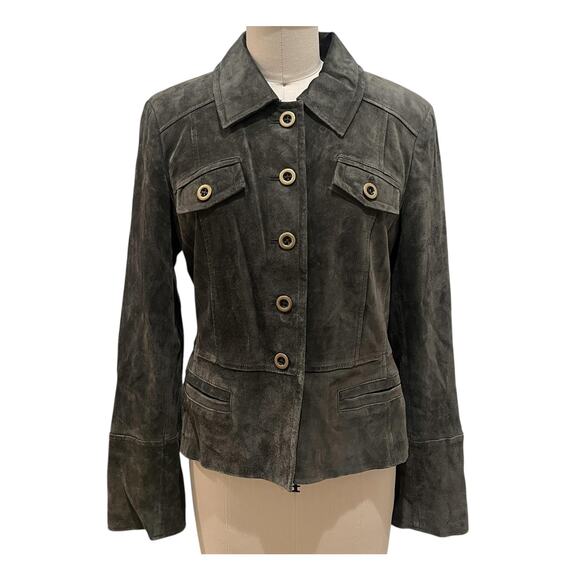 Ann Taylor Loft Jacket Womens 6 Green Suede Button Front Utility Moto