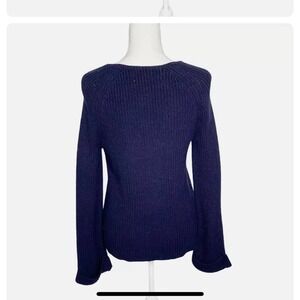 Ann Taylor Loft Chunky Knit Sweater Petite Medium Navy Blue Cuffed Sleeve. Condition is "Pre-owned". Shipped with USPS Priority Mail.