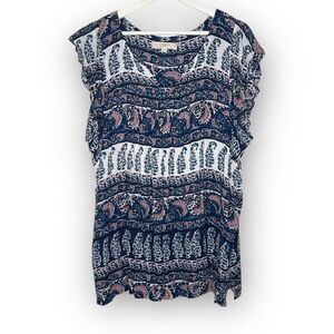 Ann Taylor Loft LOFT Multicolor Pullover Baby Doll Top Cap Sleeves Women Size XL