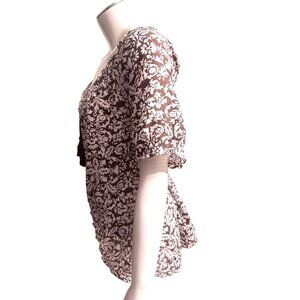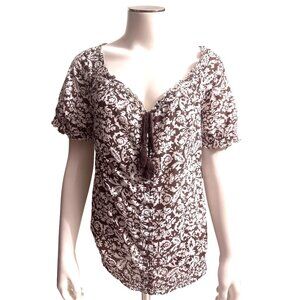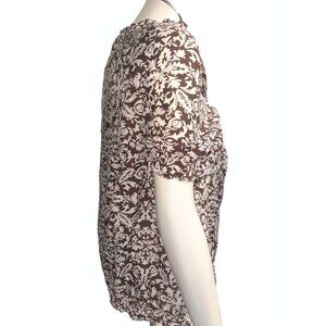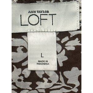 Ann Taylor Loft Large Brown White Silk Cotton Floral Blouse Romantic City Chic