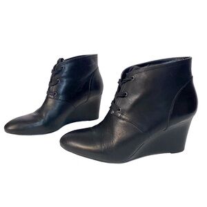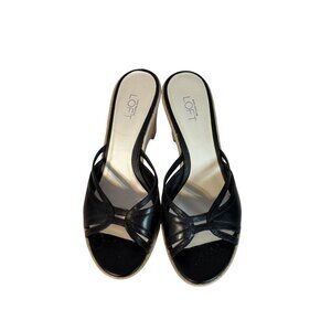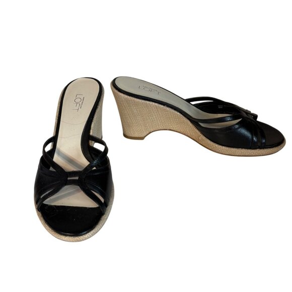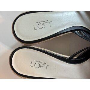 Step into these Ann Taylor Loft wedge sandals that blend casual elegance and comfort. The black leather straps offer a sleek aesthetic, while the woven wedge heel provides a touch of natural texture. Ideal for pairing with summer dresses or lightweight trousers, these sandals are both versatile and stylish.