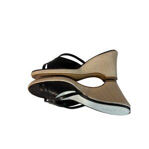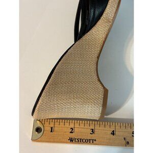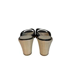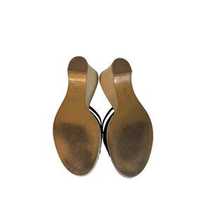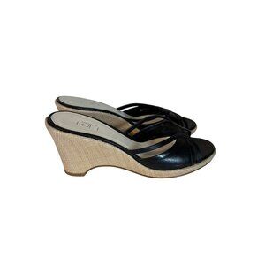 Ann Taylor Loft Leather Black Strappy Wedge Sandals Open Toe Womens 8 Woven Heel