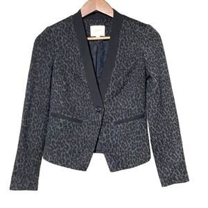 Ann Taylor Loft Leopard print black and grey jacket blazer size 00 petite