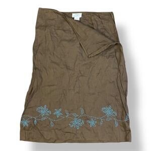 Ann Taylor Loft Linen Beaded Midi Skirt Size 4 Brown Blue Boho