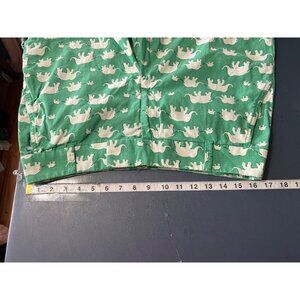 These shorts offer a playful yet chic look with their vibrant green and white elephant print. Made from a comfortable linen-cotton blend, they are lightweight and breathable, ideal for casual or summer wear.