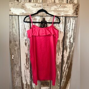 Ann Taylor Loft Linen Cotton slip dress pink ruffle spaghetti strap size 10 pink