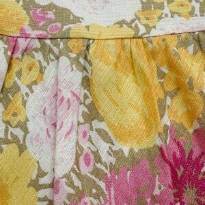 Ann Taylor Loft Linen Floral Peony Pleated A-Line Skirt Pink & Yellow Size 6