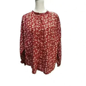Ann Taylor Loft Long sleeve, button down, floral print, burgundy Prairie Top M