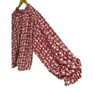 Ann Taylor Loft Long sleeve, button down, floral print, burgundy Prairie Top M