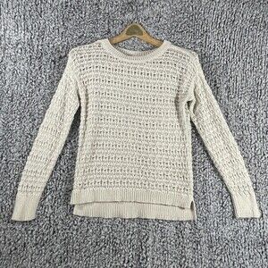 Ann Taylor Loft Loose Knit Sweater Long Sleeve Crew Neck Cream Women's Size XS