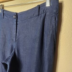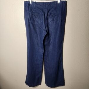 Ann Taylor Loft Marisa 100% Linen Navy Mid Rise Wide Leg Pants-Size 8