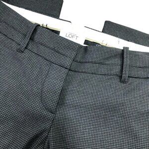 These Ann Taylor Loft Marisa dress pants offer a sophisticated look with their black and gray houndstooth pattern, suitable for professional settings. Crafted from quality materials, they provide comfort and style for a polished appearance. Their classic design ensures versatility in any business wardrobe.