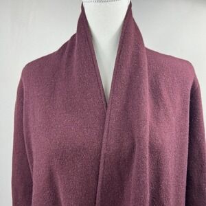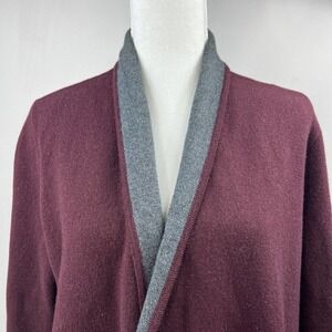 Ann Taylor Loft Maroon Gray Wool Blend Open Cardigan XS Sweater Jacket