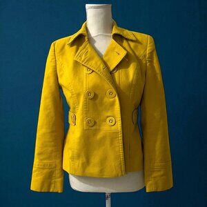 Ann Taylor Loft Mustard Yellow Preppy Double Breasted Academia Peacoat Jacket SP