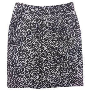 Ann Taylor Loft Pencil Skirt Women's Lined Rear Zip/Slit Animal Print Black White 71% Cotton 29% Silk Blend