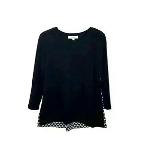 Ann Taylor Loft NWT SZ Medium Navy Blue Ribbed 3/4 Sleeve Blouse Top Hi Low Hem